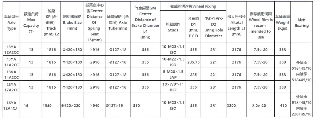 Toto je standardní 13t americká náprava. Prostřednictvím optimalizovaného designu dosahuje lehkého bez obětování síly a snižuje svou vlastní hmotnost. Standardní 13t náprava váží pouze 330 kg. Je silný a odolný, zlepšuje celkové mechanické vlastnosti nápravy a má vynikající únavovou odolnost a houževnatost.